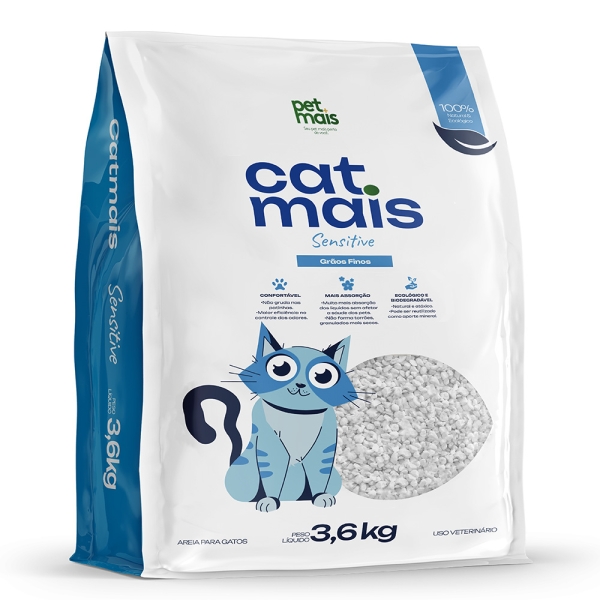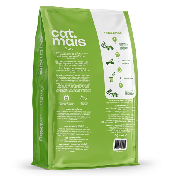 O CatMais Biodegradável foi desenvolvido para tutores que buscam praticidade sem abrir mão da sustentabilidade. Produzido com 100% de grãos de mandioca, é um granulado natural, biodegradável e de alto rendimento.